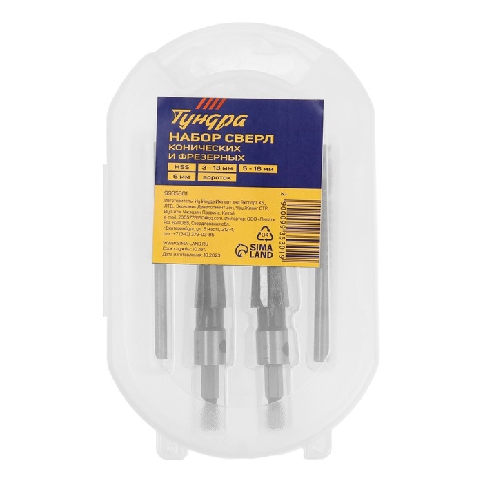 Набор сверл конических и фрезерных ТУНДРА, HSS, 3 - 13 мм, 5 - 16 мм, 6 мм, вороток