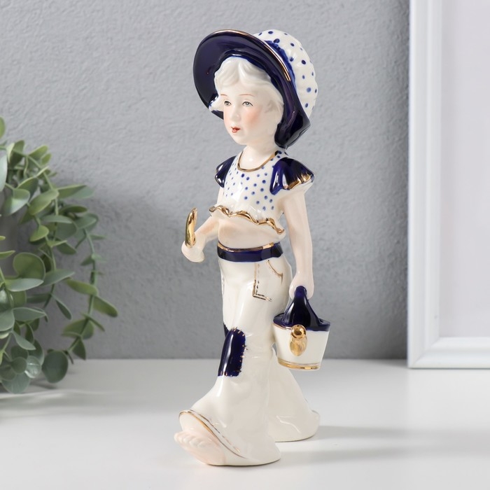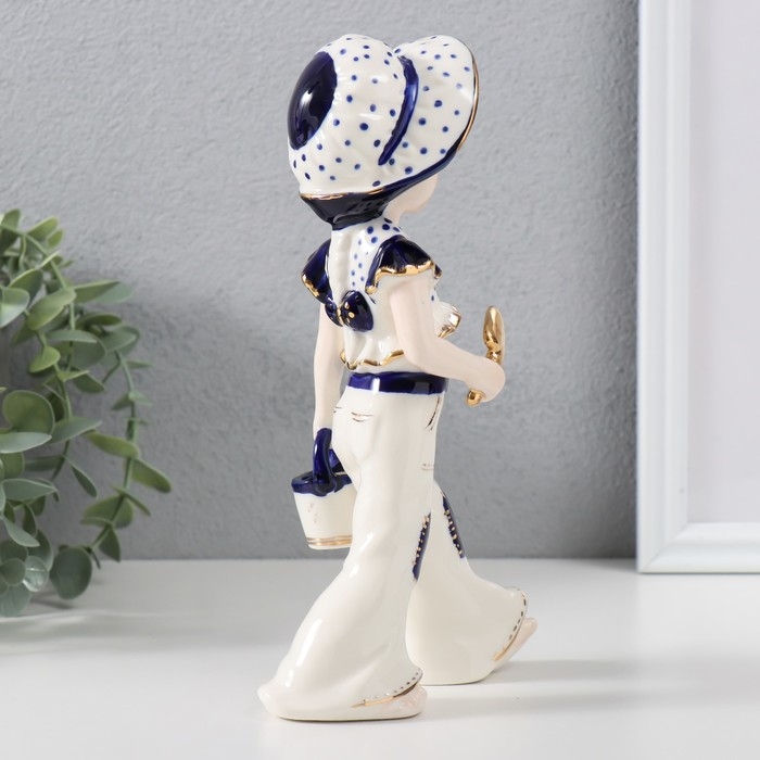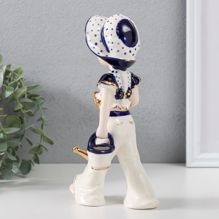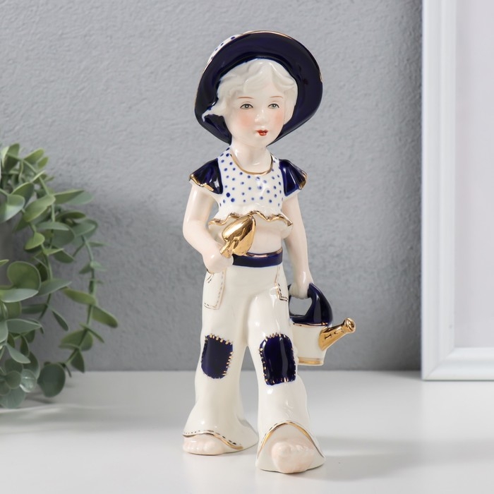 Сувенир керамика "Девочка с лейкой и лопаткой, в шляпке" кобальт 8х11х21 см