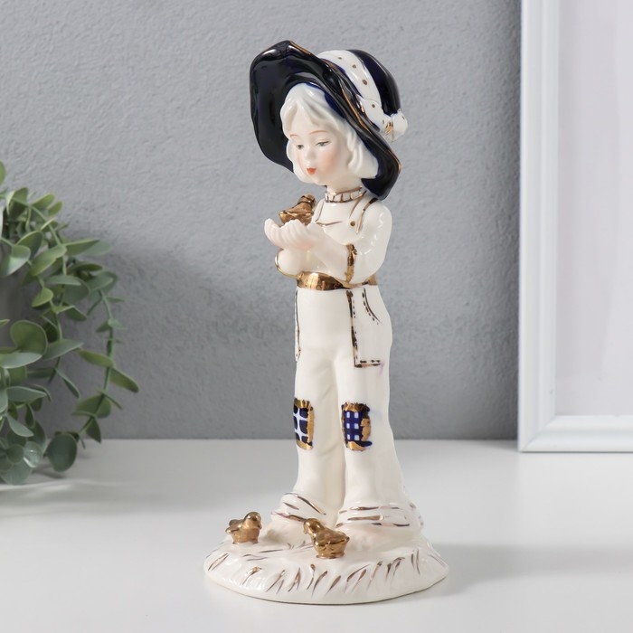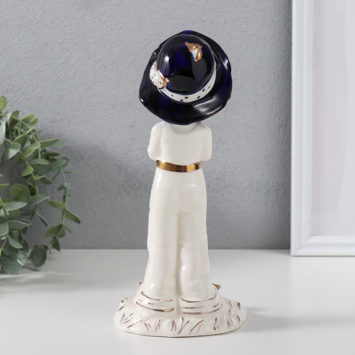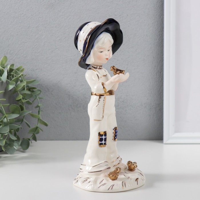 Сувенир керамика "Девочка с птичкой в ладошках, в шляпке" кобальт 9,5х9,7х22 см