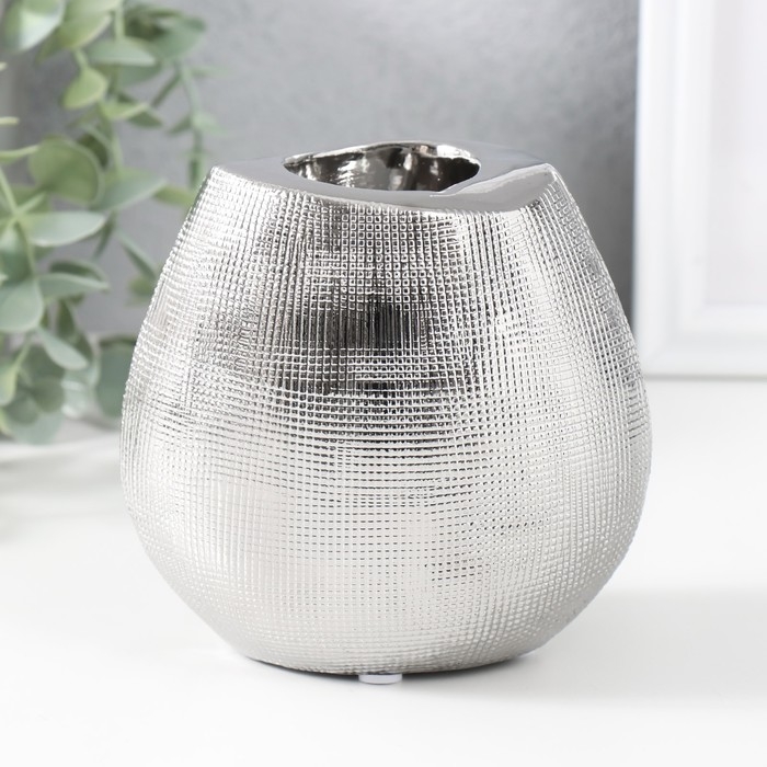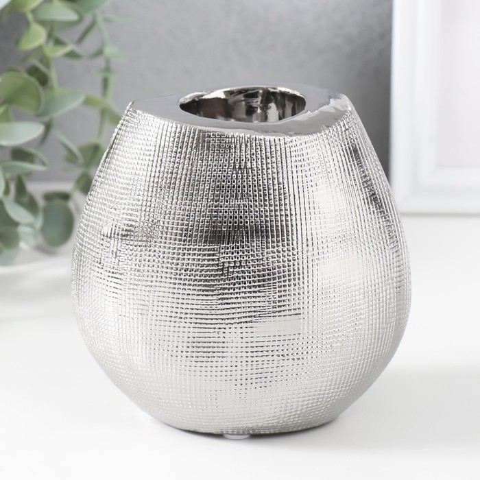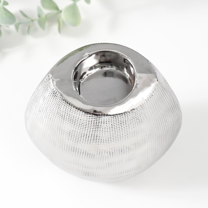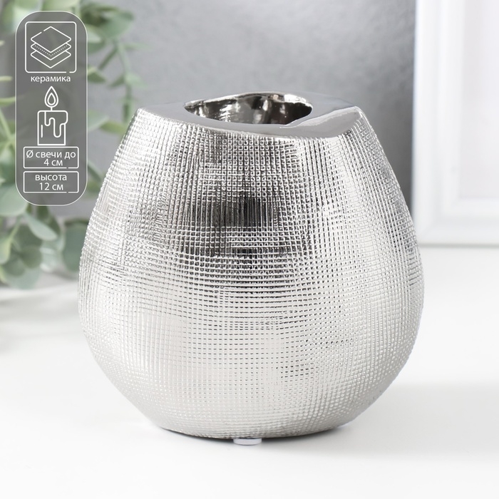 Подсвечник керамика на 1 свечу "Глория" d=4 см серебро 12,5х8х12 см