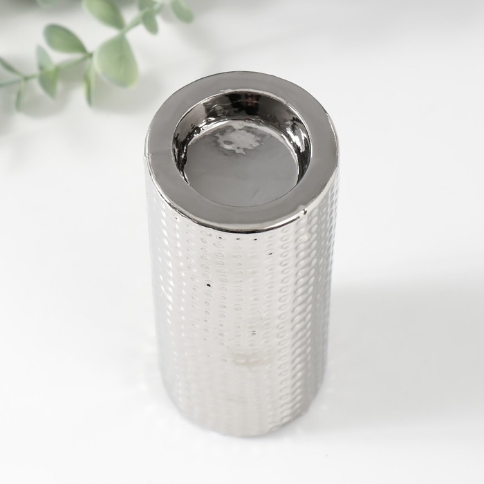 Подсвечник керамика на 1 свечу "Капли воды" d=4 см серебро 6,5х6,5х14,5 см