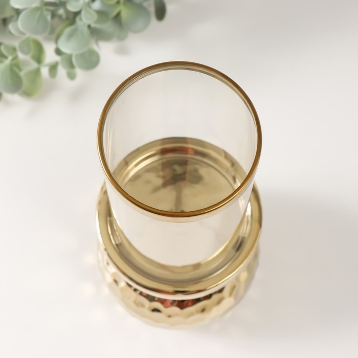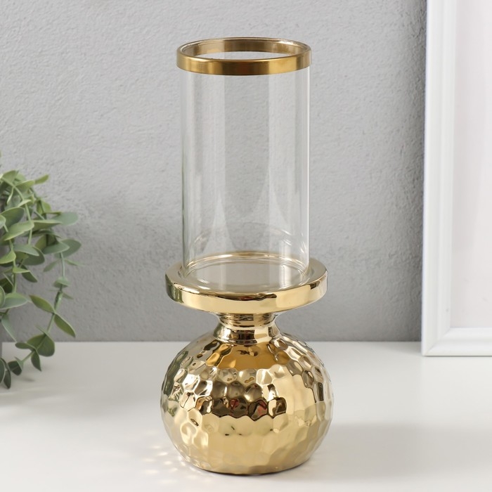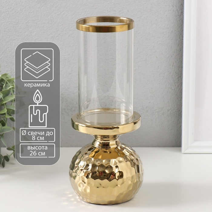 Подсвечник керамика, стекло на 1 свечу "Лоджуар" d=8 см золото 10,5х10,5х26 см