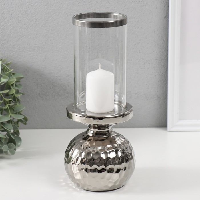 Подсвечник керамика, стекло на 1 свечу "Лоджуар" d=8 см серебро 10,5х10,5х26 см