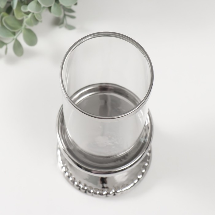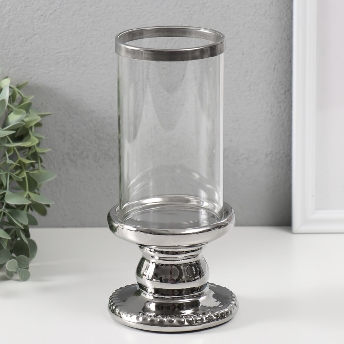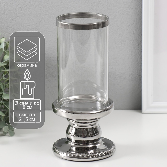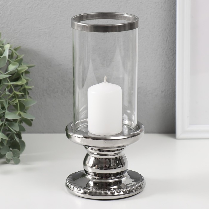 Подсвечник керамика, стекло на 1 свечу "Веллис" d=8 см серебро 10х10х21,5 см