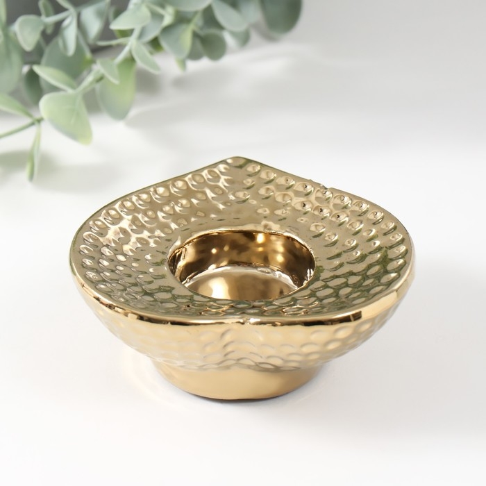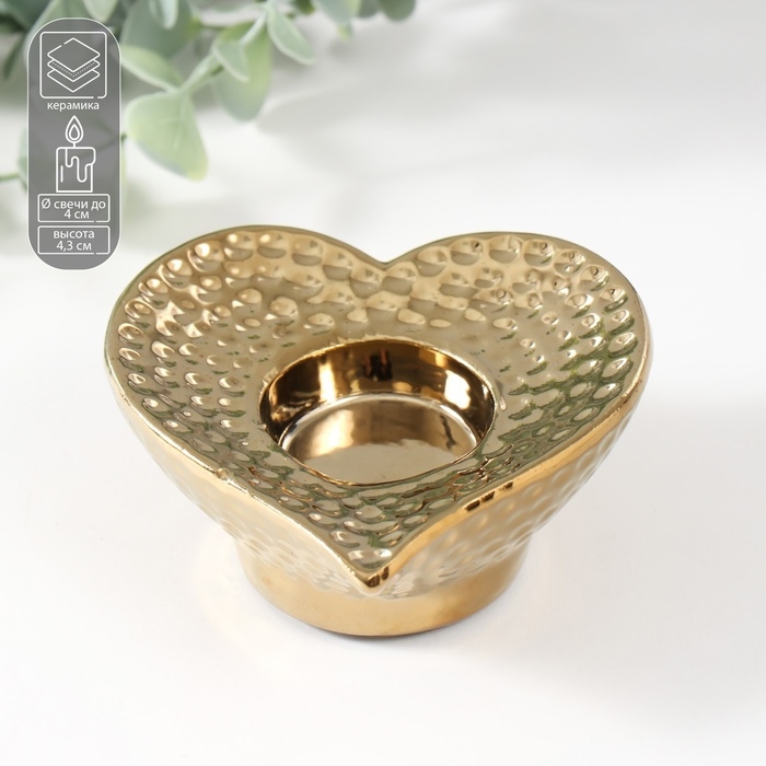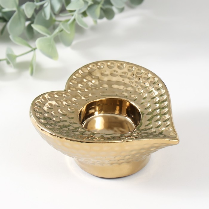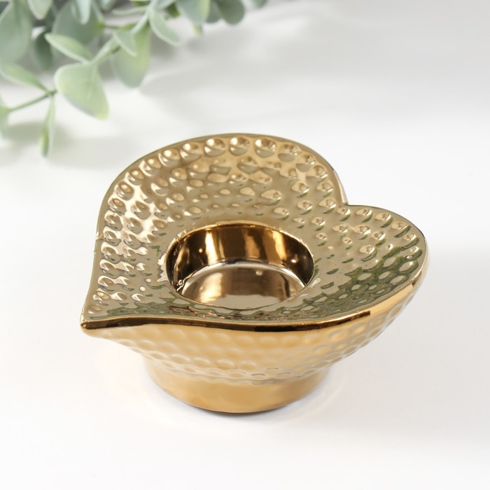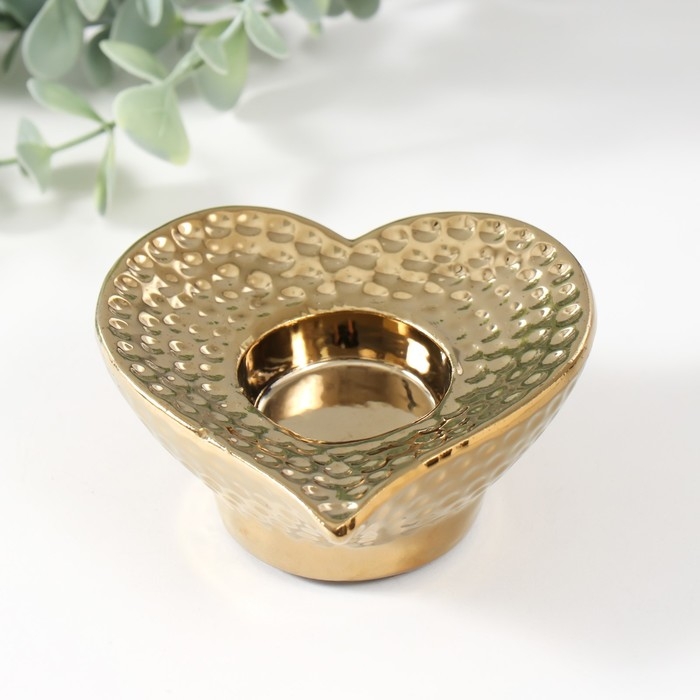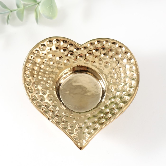 Подсвечник керамика на 1 свечу "Сердце" d=4 см золото 10,2х10,2х4,3 см