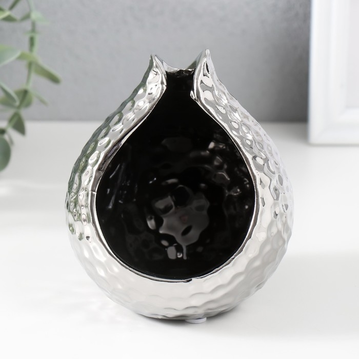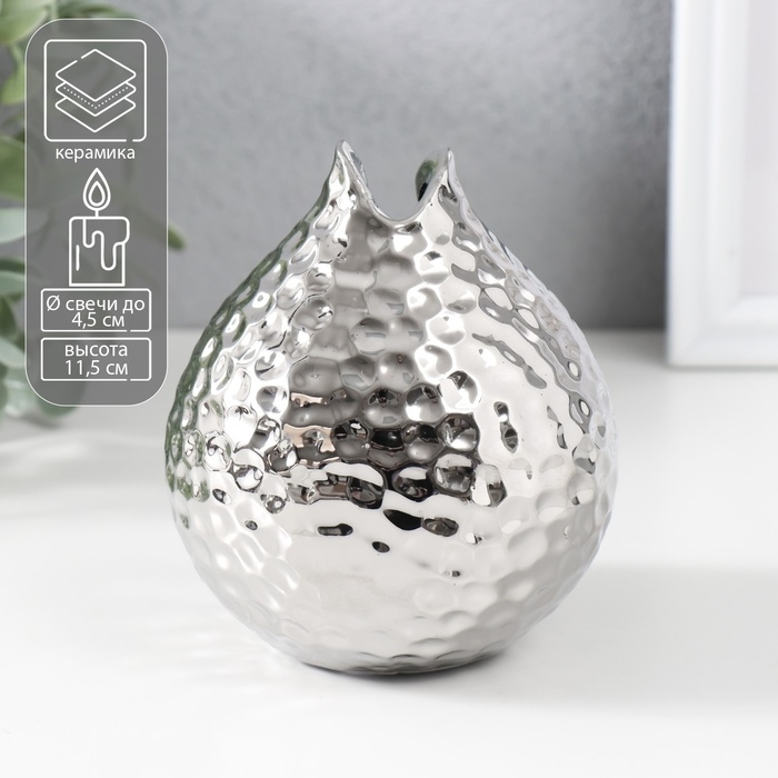 Подсвечник керамика на 1 свечу "Гранат" d=4,5 см серебро 10х10х11,5 см