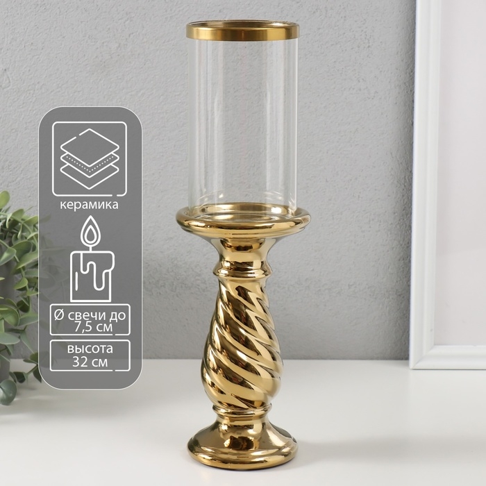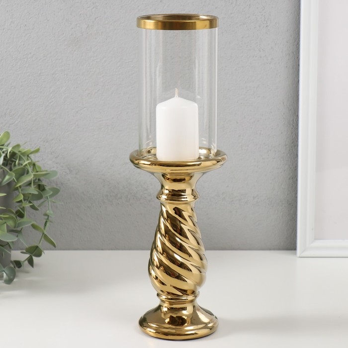 Подсвечник керамика, стекло на 1 свечу "Виток" d=7,5 см золото 9,5х9,5х32 см
