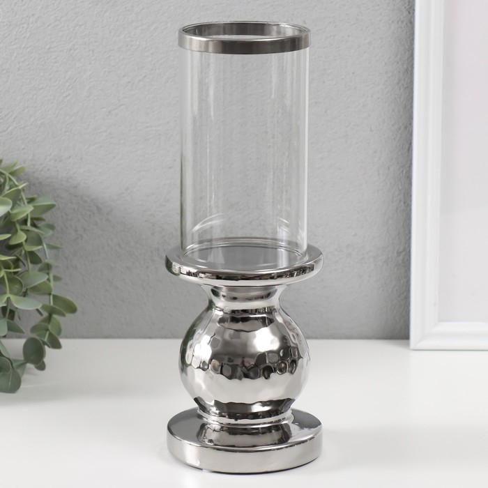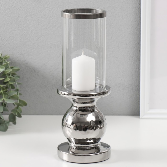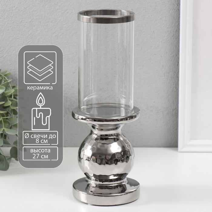 Подсвечник керамика, стекло на 1 свечу "Нуар" d=8 см серебро 10х10х27 см