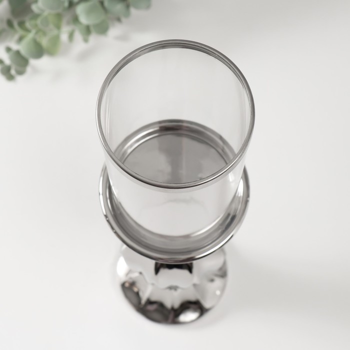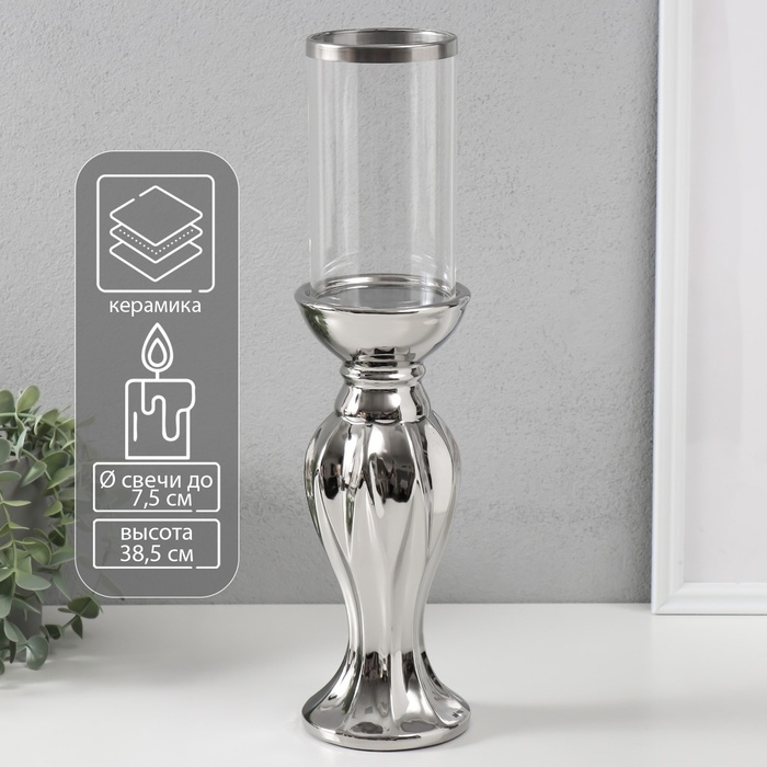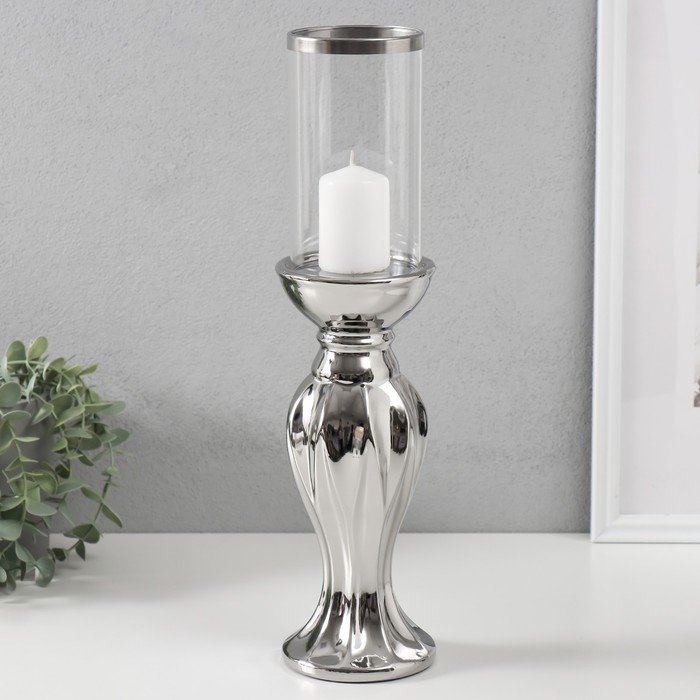 Подсвечник керамика, стекло на 1 свечу "Версаль" d=7,5 см серебро 9,5х9,5х38,5 см
