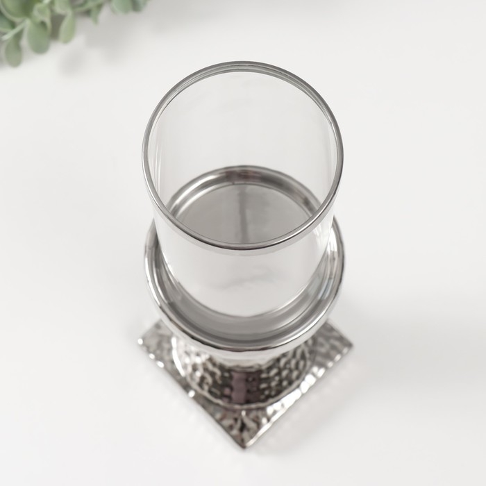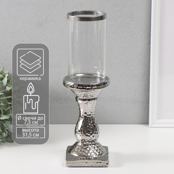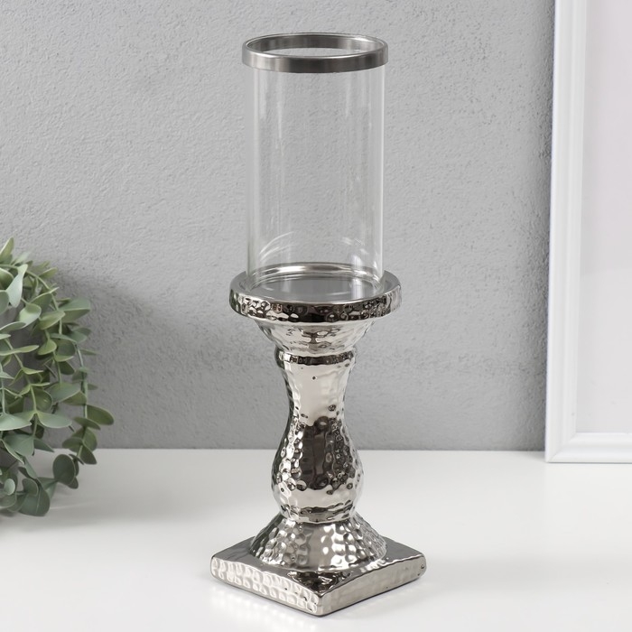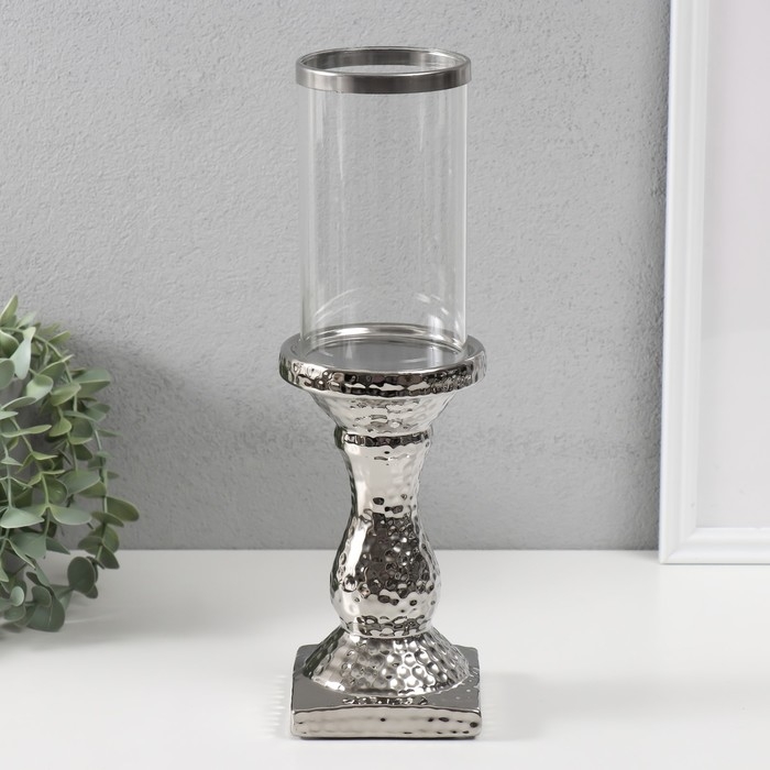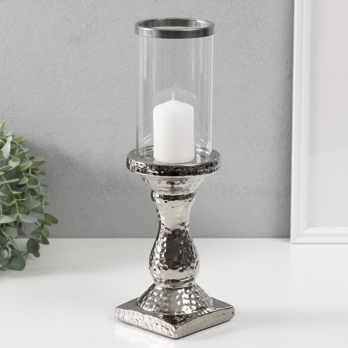 Подсвечник керамика, стекло на 1 свечу "Монти" d=7,5 см серебро 9х9х31,5 см