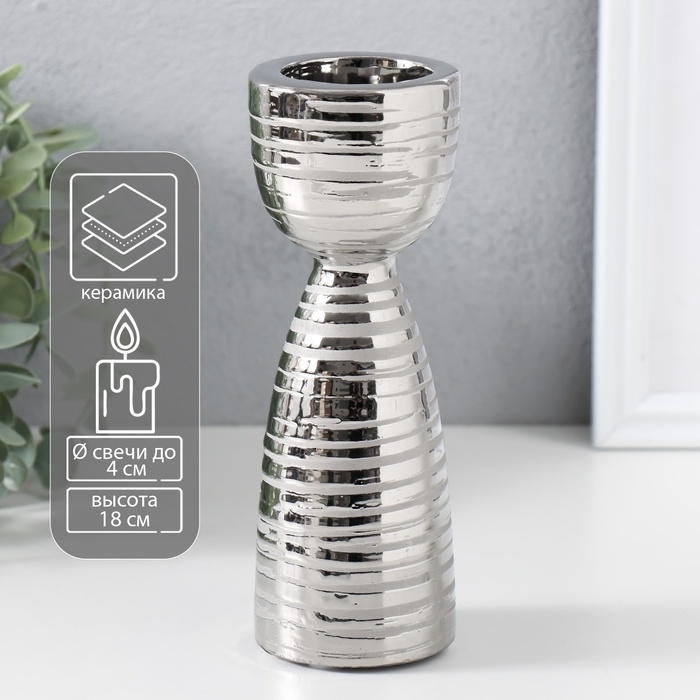 Подсвечник керамика на 1 свечу "Зебра" d=4 см серебро 6,5х6,5х18 см
