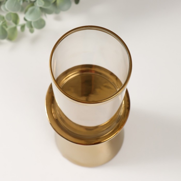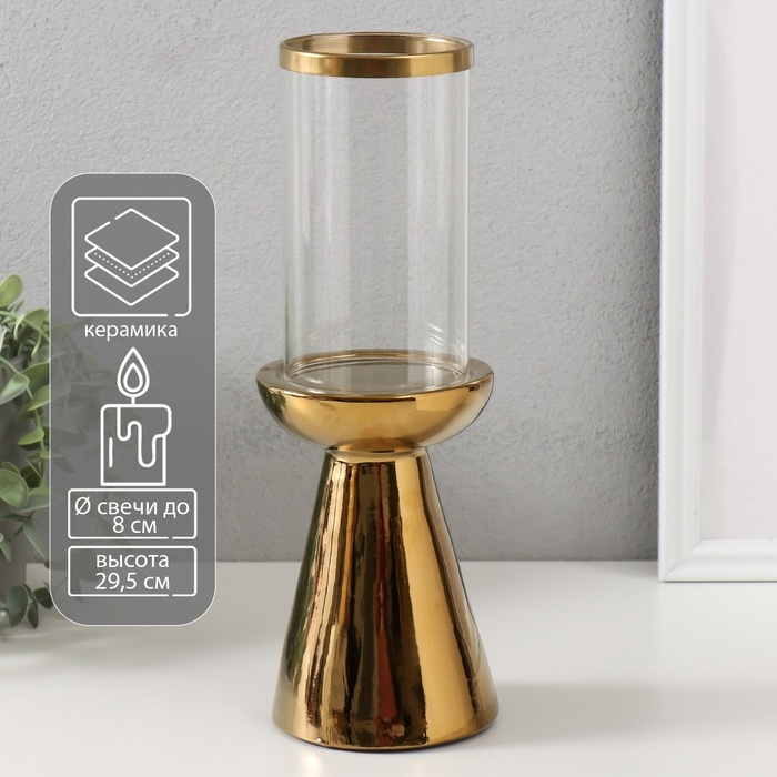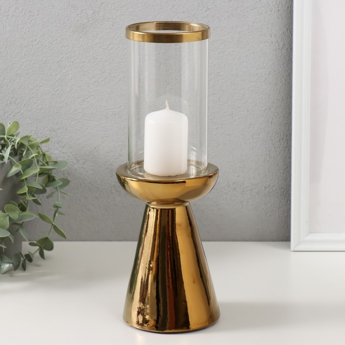 Подсвечник керамика, стекло на 1 свечу "Гладь" d=8 см золото 10х10х29,5 см