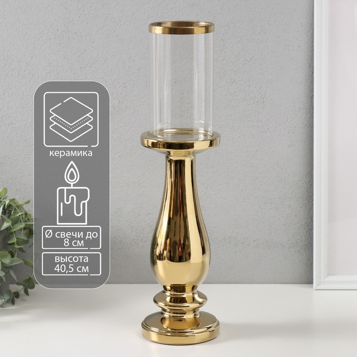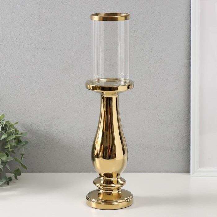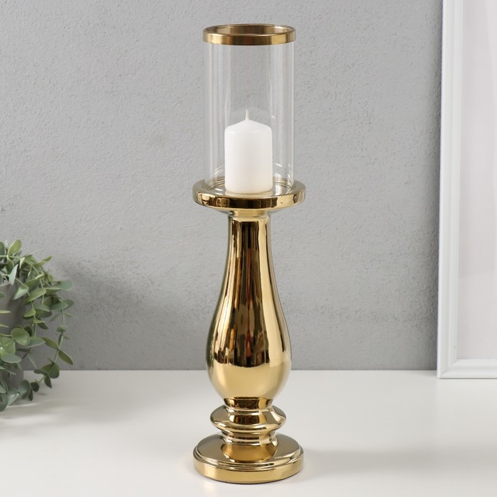 Подсвечник керамика, стекло на 1 свечу "Аванти" d=8 см золото 10х10х40,5 см