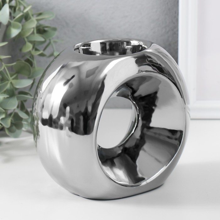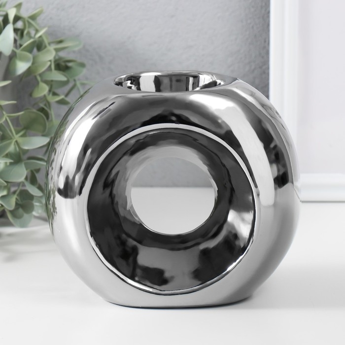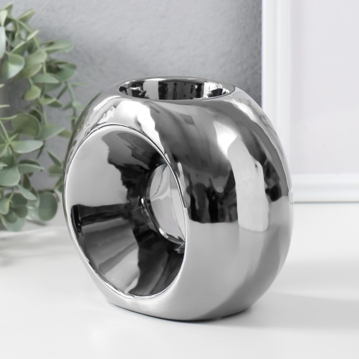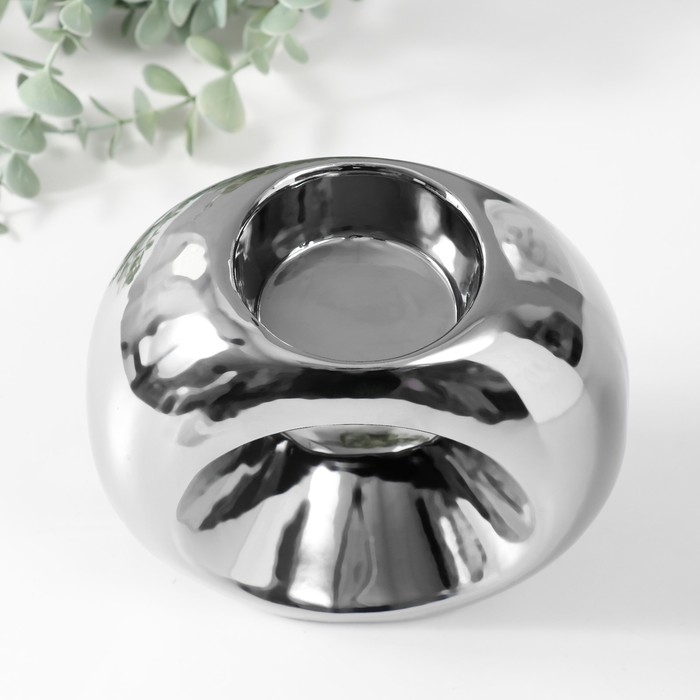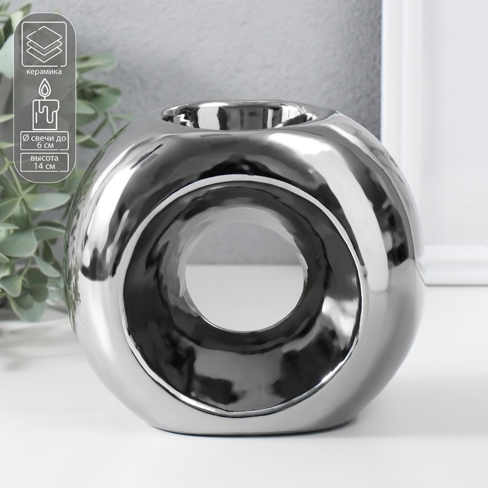 Подсвечник керамика на 1 свечу "Кольцо" d=6 см серебро 16х8х14 см