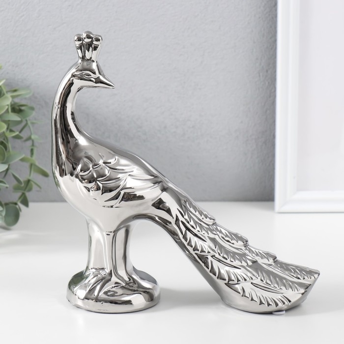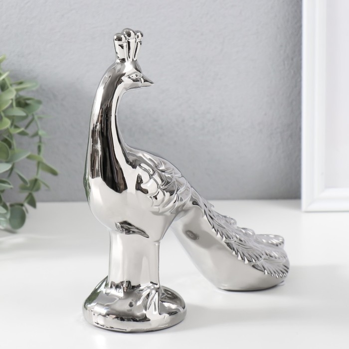 Сувенир керамика "Павлин" серебро 20,5х7х21,5 см