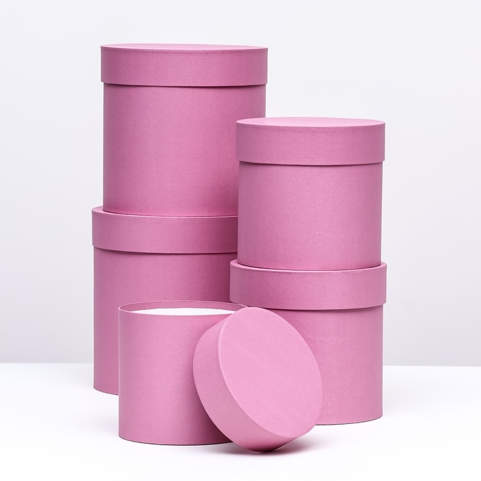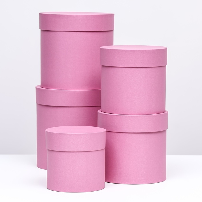 Набор шляпных коробок 5в1, розовый, 20 х 20 - 13 х 13 см