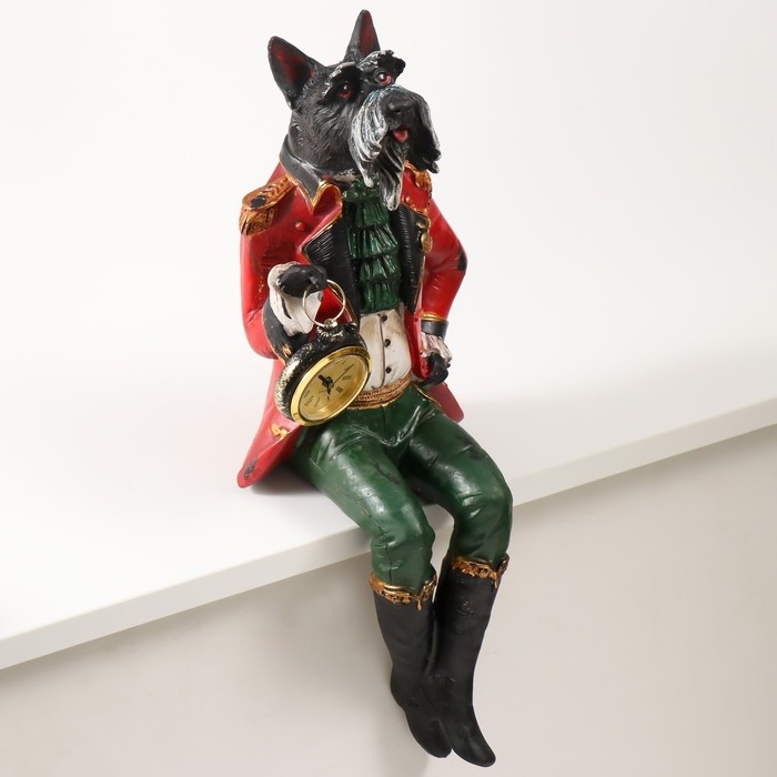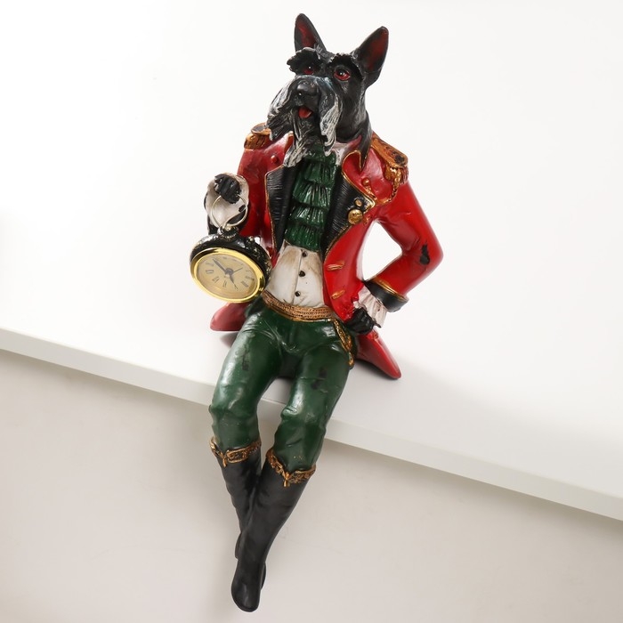 Сувенир полистоун с часами "Терьер в красном камзоле" сидит 16,5х14,5х36,5 см