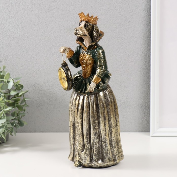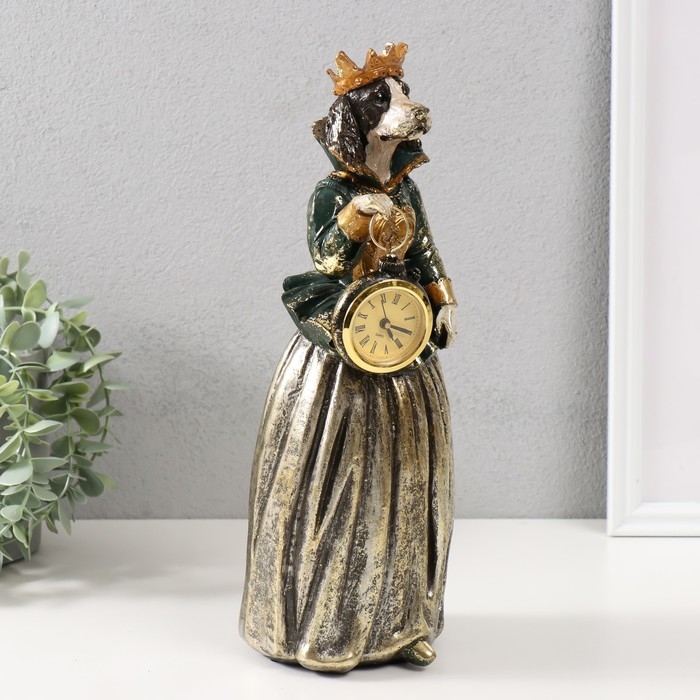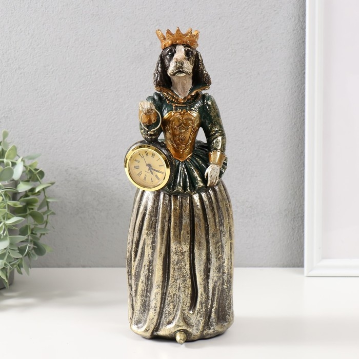 Сувенир полистоун с часами "Спаниэль в короне платье" 12х11х32 см