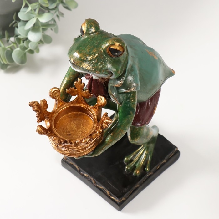 Подсвечник полистоун "Лягуха с короной" 14,5х12,5х26 см