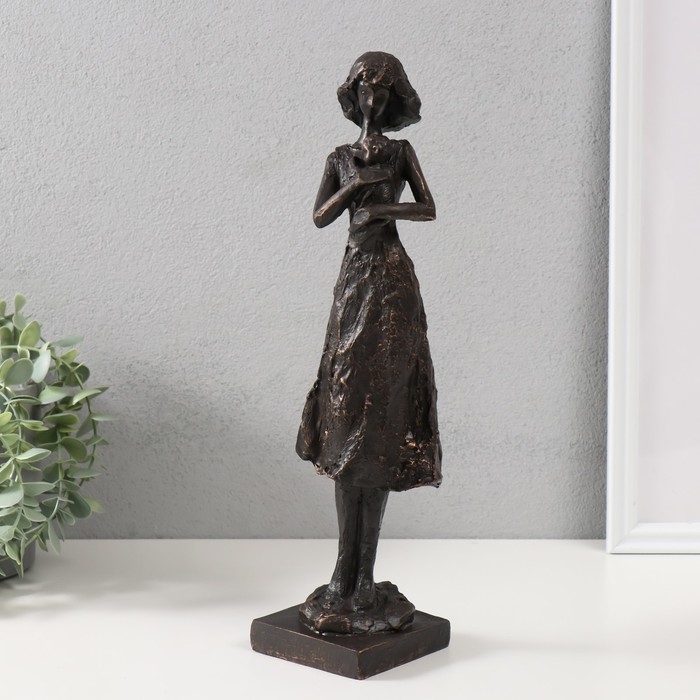 Сувенир полистоун "Девушка с ребёнком" чёрный 34х9,5х9 см