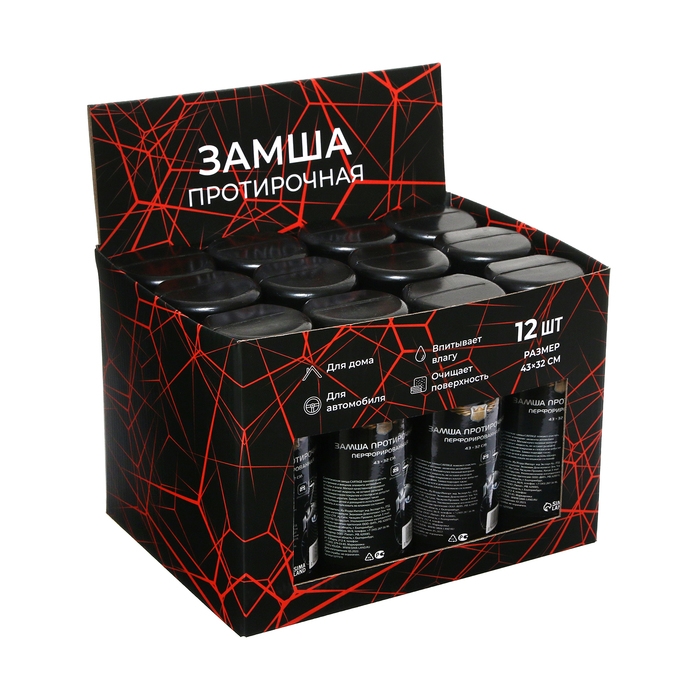 Замша протирочная в тубе 43x32 см, серый цвет, набор из 12 штук в шоубоксе - это идеальный выбор для эффективной и быстрой очистки поверхностей. Благодаря своим уникальным свойствам, замша обеспечивает деликатный уход за различными поверхностями, не оставляя разводов и царапин.