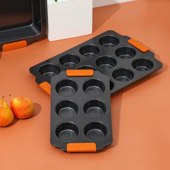 Форма для выпечки изготовлена из высококачественной углеродистой стали с внутренним антипригарным покрытием, что позволяет выпекать без использования масла или жира. Форма имеет круглую форму с 12 круглыми ячейками, что идеально подходит для выпечки небольших кексов, маффинов, печенья и других кондитерских изделий.