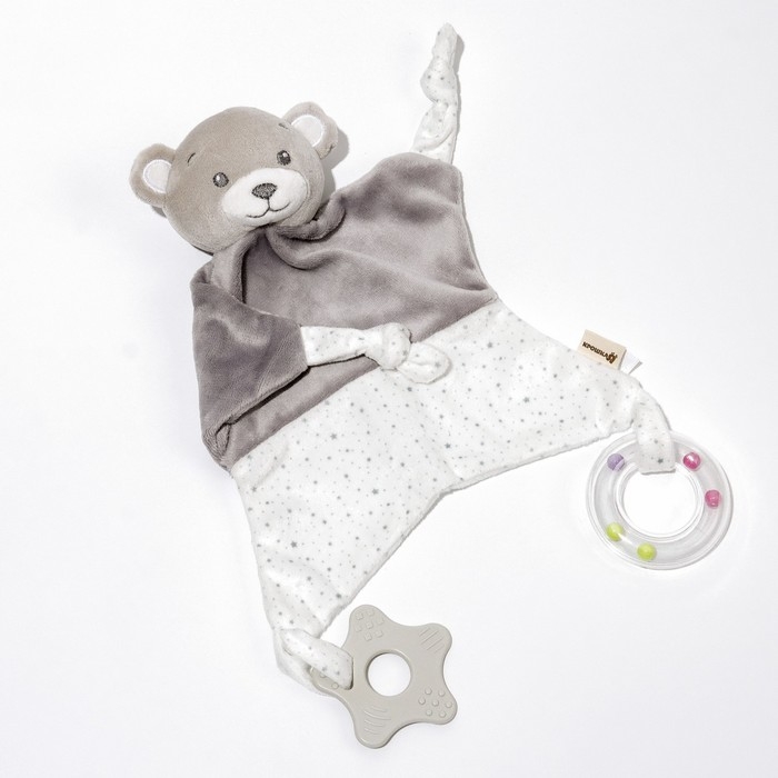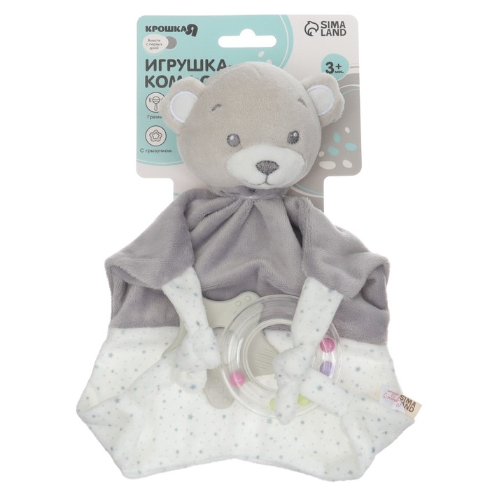 Комфортер - игрушка «Серый мишка», погремушка, прорезыватель, цвет серый, Крошка Я