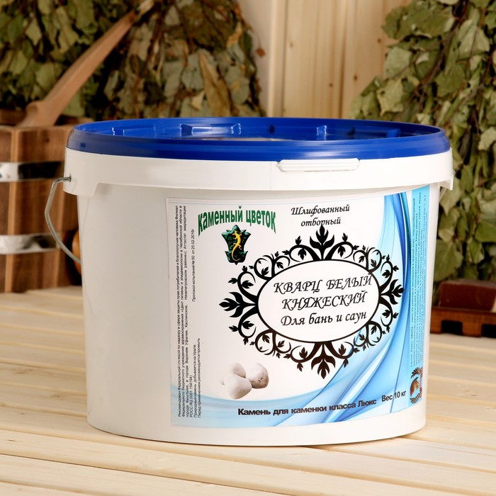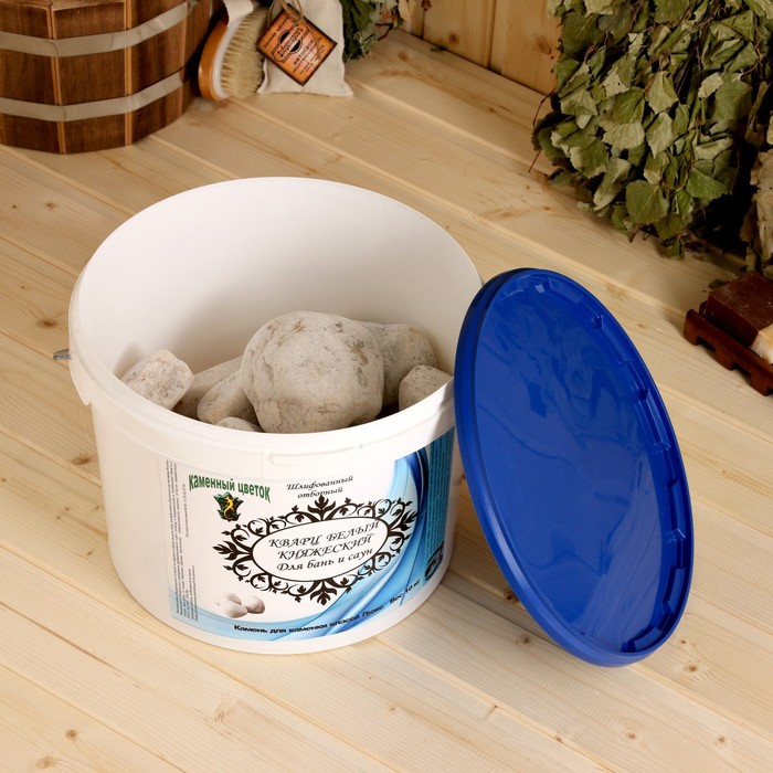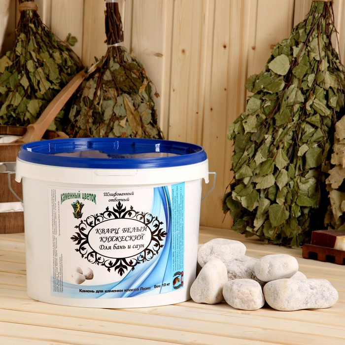 Камень для бани "КВАРЦ БЕЛЫЙ КНЯЖЕСКИЙ " галтованный, ведро 10 кг, фракция 70-120 мм