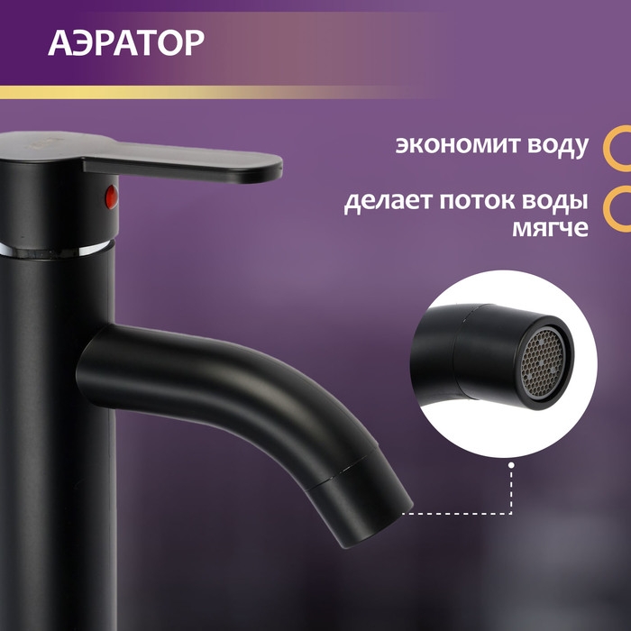 Смеситель для раковины ZEIN Z3653, однорычажный, высота излива 8 см, ABS-пластик, черный