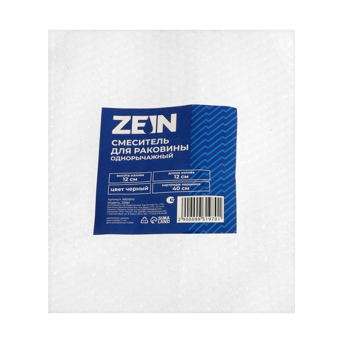 Смеситель для раковины ZEIN Z3661, однорычажный, высота излива 12 см, ABS-пластик, черный