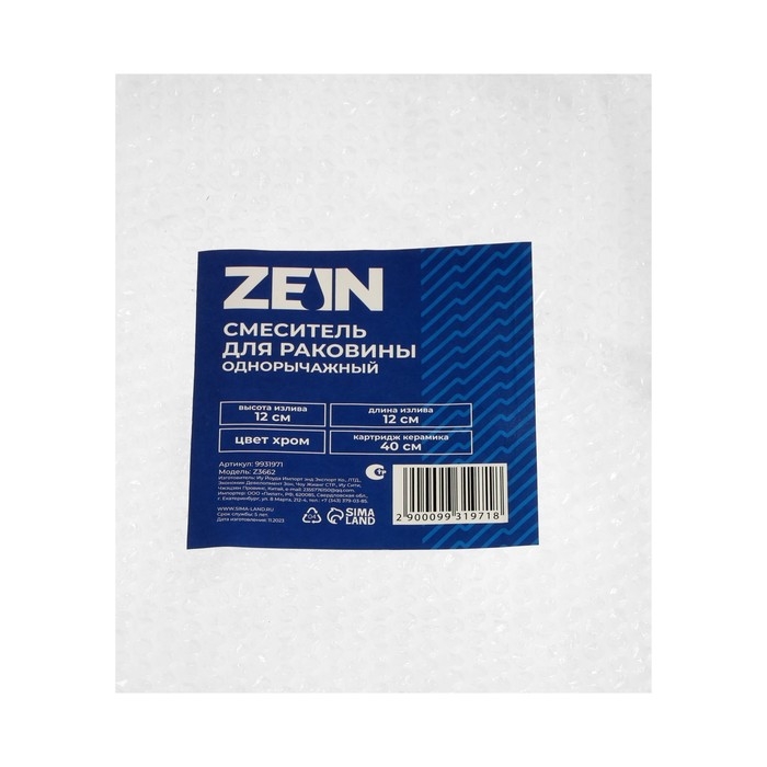 Смеситель для раковины ZEIN Z3662, однорычажный, высота излива 12 см, ABS-пластик, хром