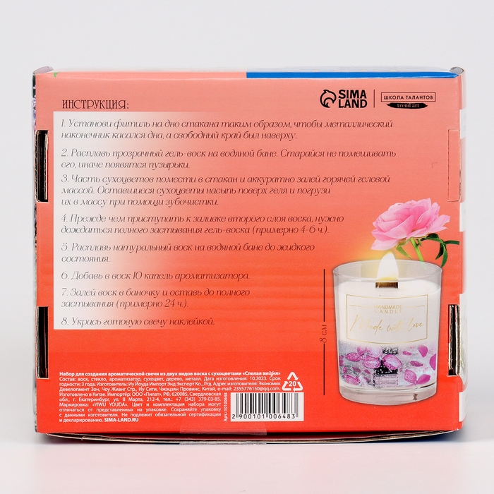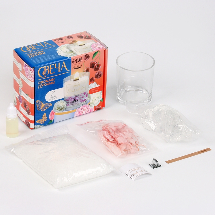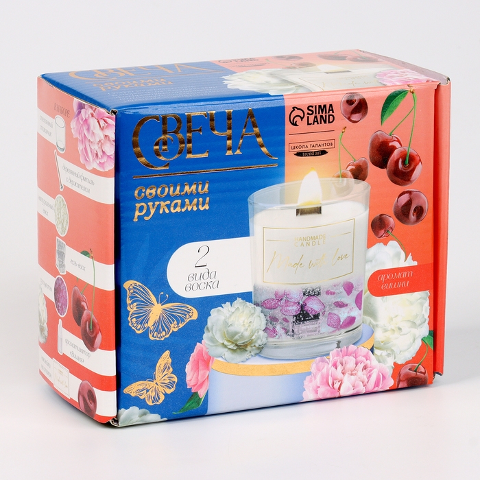 Набор для создания ароматической свечи из двух видов воска с сухоцветами "Спелая вишня"
