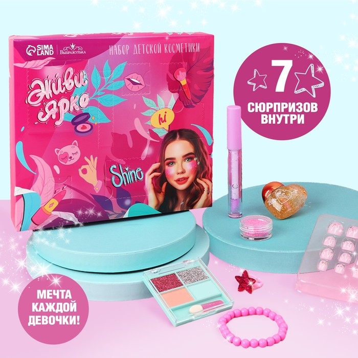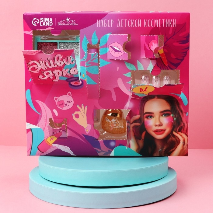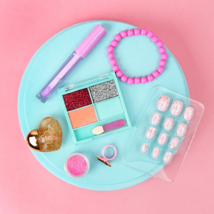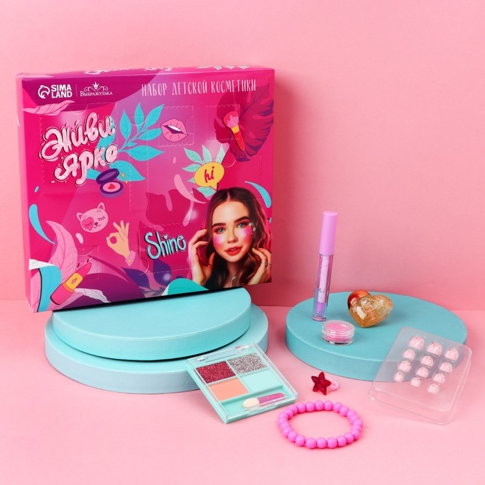 Набор детской косметики «Живи ярко», тени, блеск для губ, накладные ногти, глиттер, кольцо, браслет