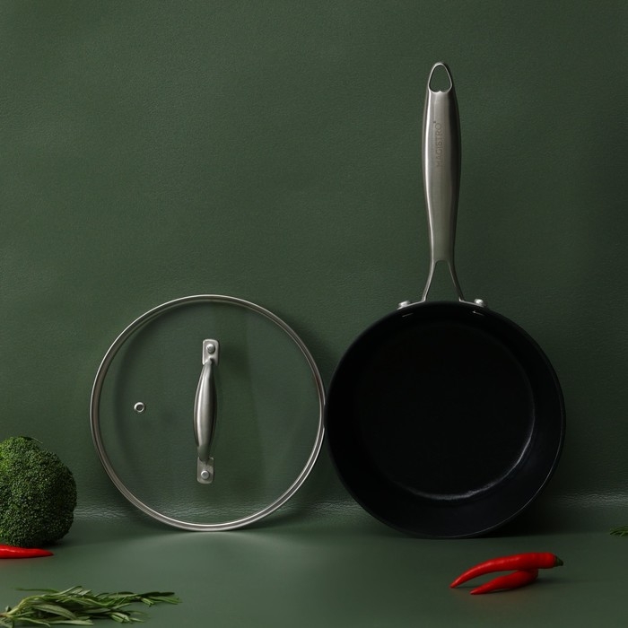 Ковш из нержавеющей стали Magistro «Rock Stone», 1,5 л, d=18 см, h=8 см, с крышкой, антипригарное покрытие, индукция