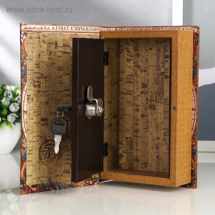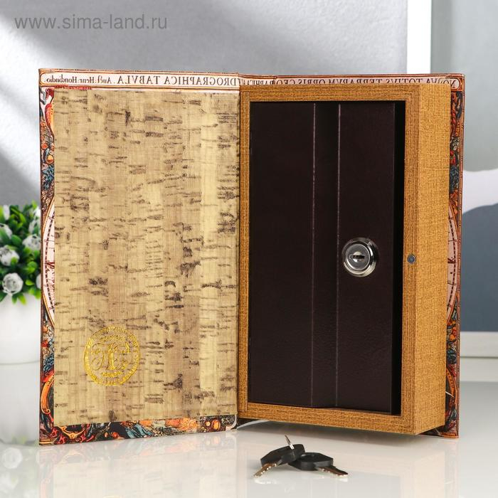 Сейф-книга дерево "Морской путь, карта" кожзам 21х13х5 см