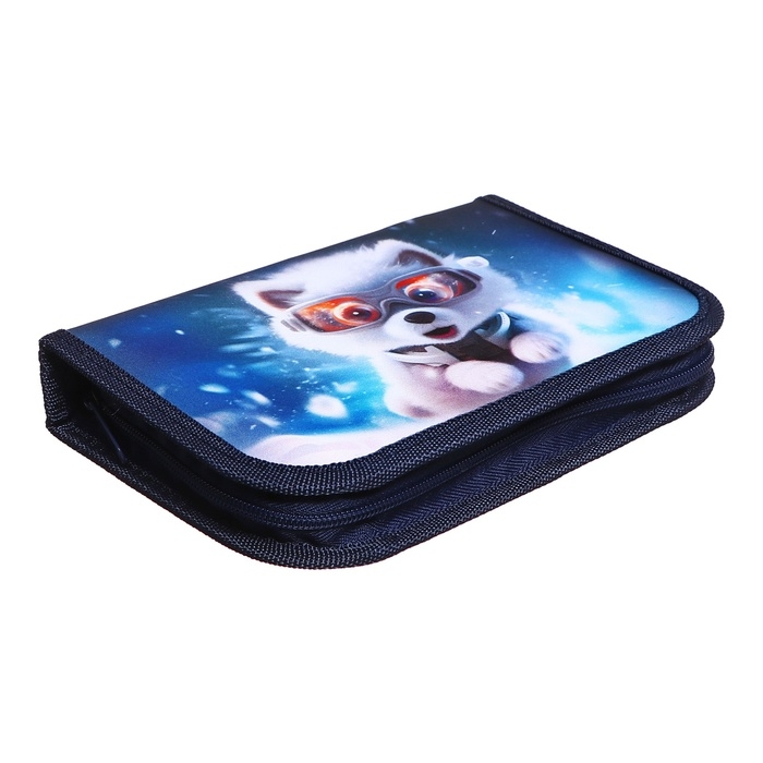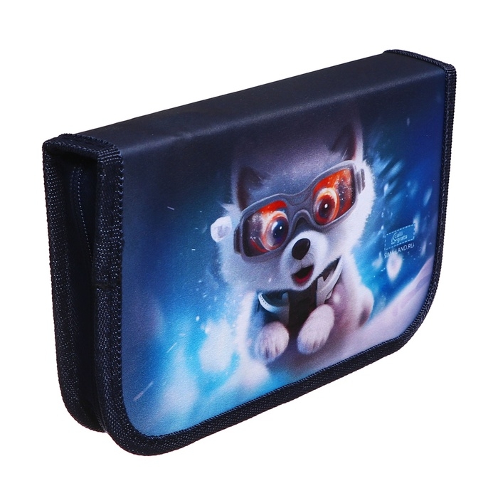 Пенал 1 секция, 130 х 210 х 40 мм, 2 откидные планки, тканевый, Calligrata TOP, Content "Супер песик"