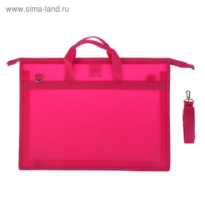 Папка для чертежей и рисунков A3, 420 х 343 х 50 мм, с ручками, пластиковая, молния сверху, 0.9 мм, "Стандарт" ПР 5, плечевой ремень, розовая