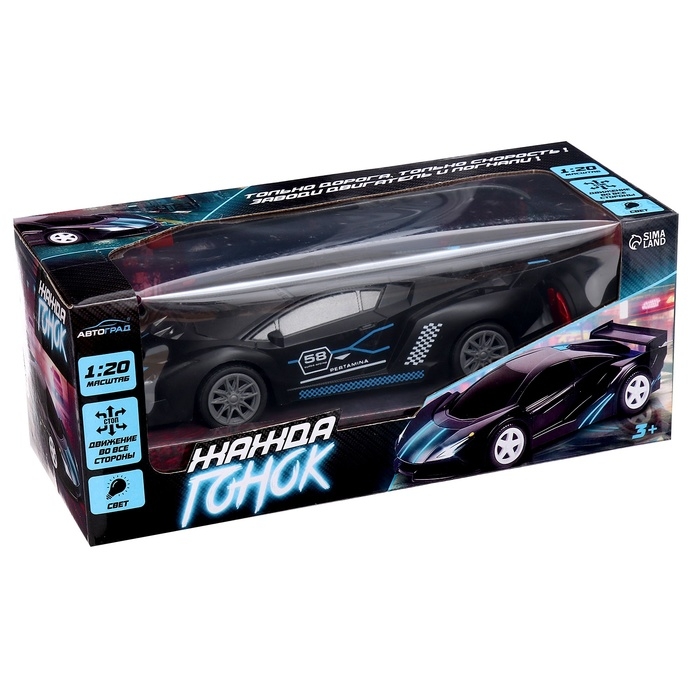 Машина радиоуправляемая «Жажда гонок», 1:20, работает от батареек, цвет чёрный