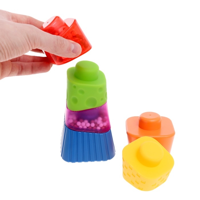 - Развивайте тактильное восприятие, трогая детали. Потрясите кубик с шариками и попросите малыша повторить ритм за вами.