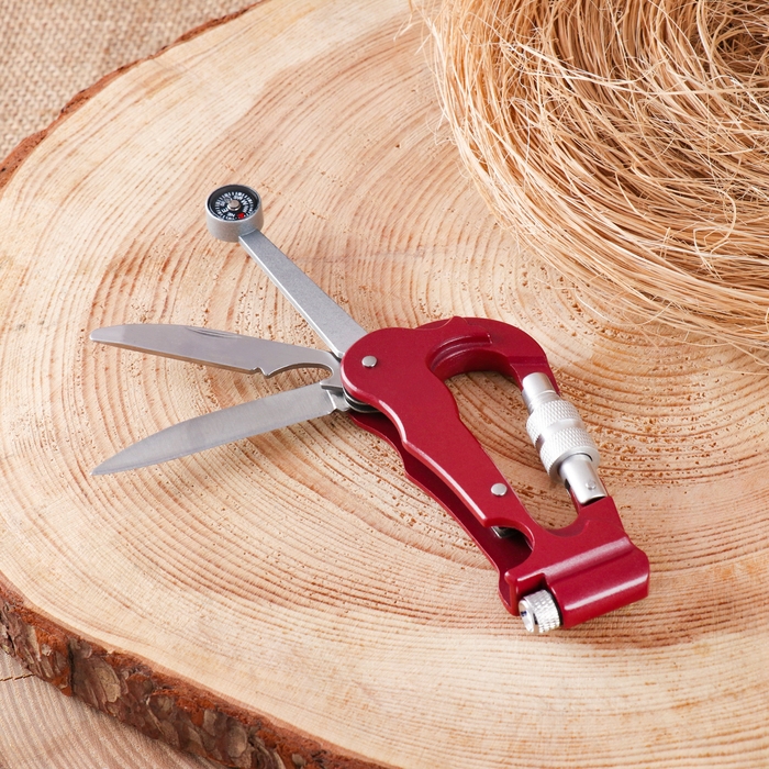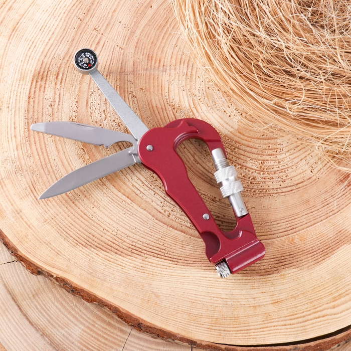 Нож складной 3в1 "Карабин" 15см, клинок 61мм/2мм, с компасом и фонариком