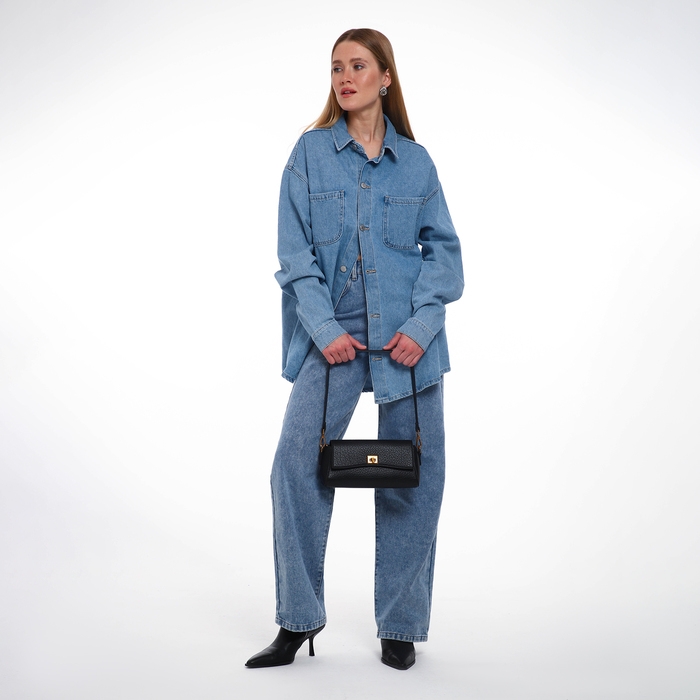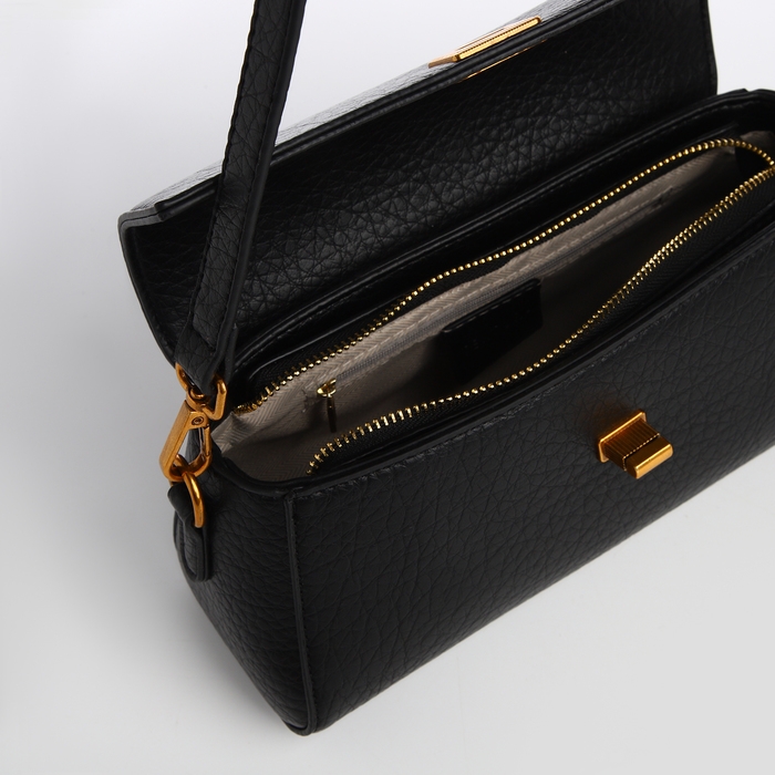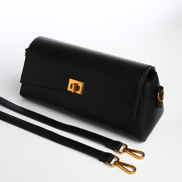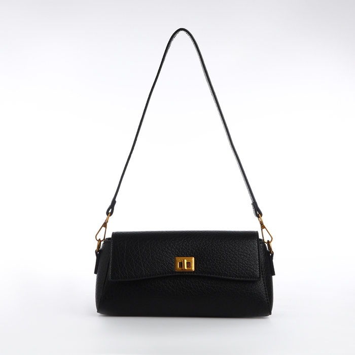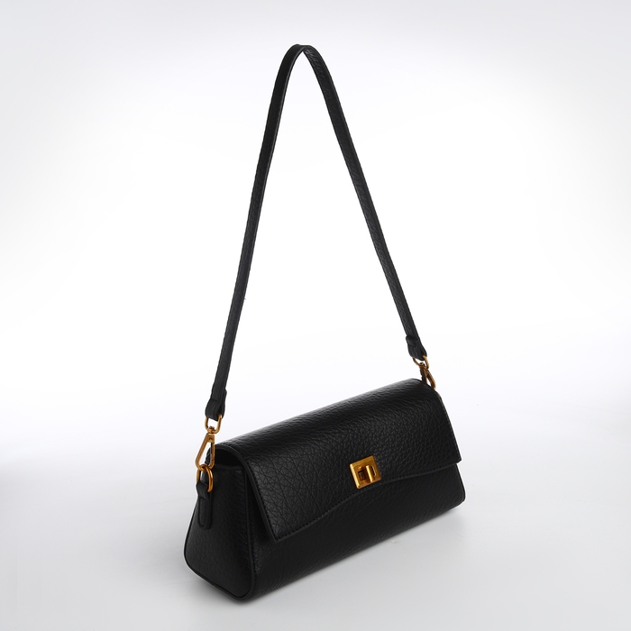Сумка женская мессенджер на клапане TEXTURA, средний размер, цвет чёрный