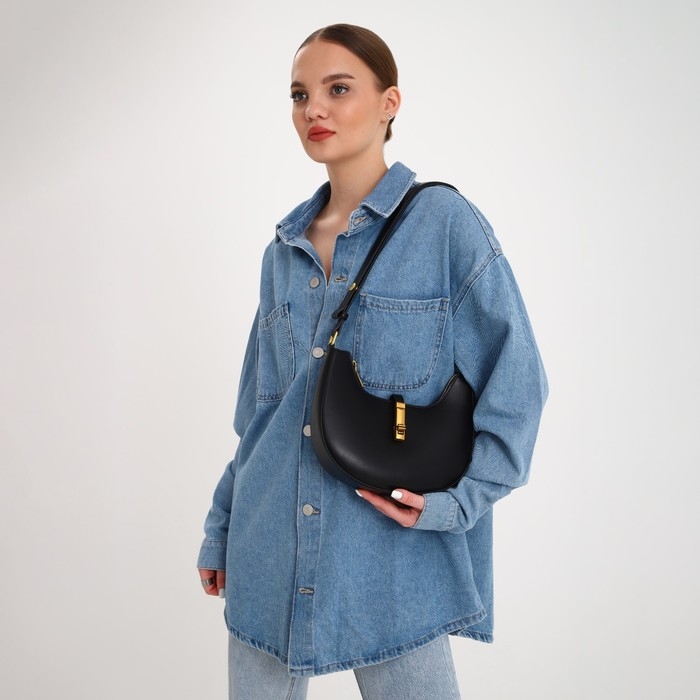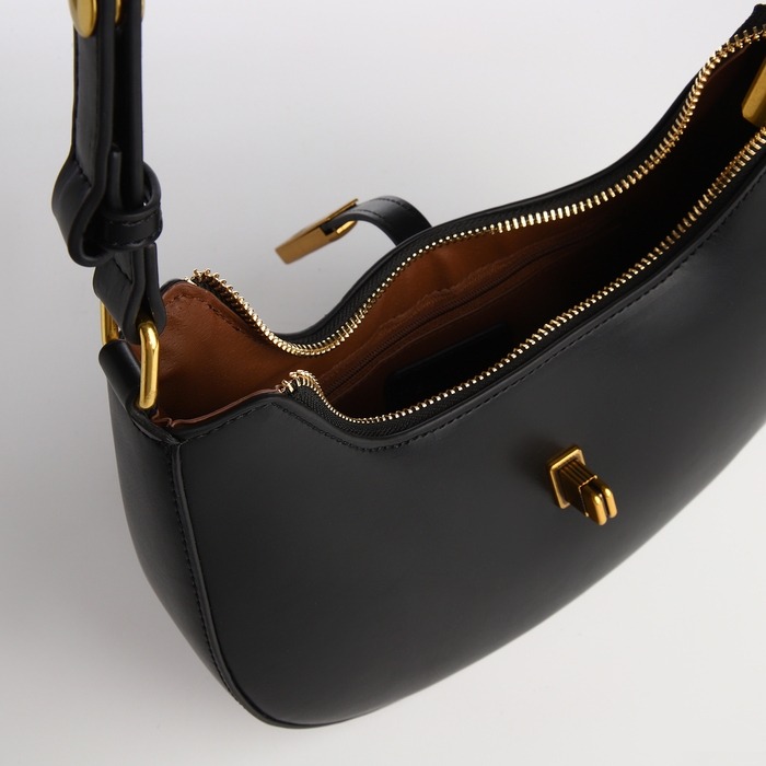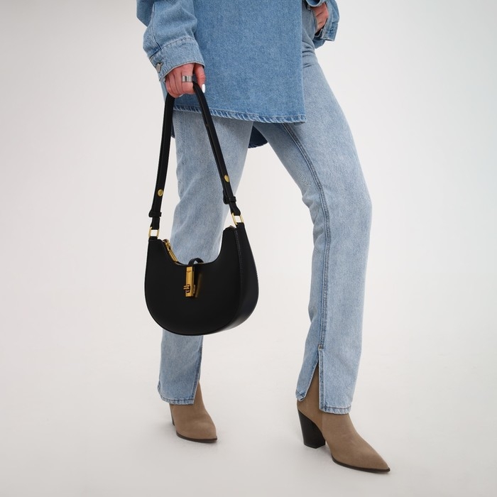 - Стильный дизайн: строгий чёрный цвет и золотая фурнитура придают сумке роскошный вид, подходящий для любого случая.
