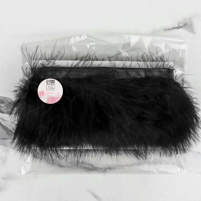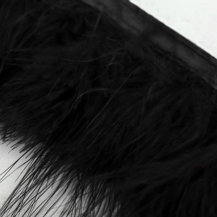 Тесьма с перьями марабу, 8-10 см, 5 ± 0,5 м, цвет чёрный