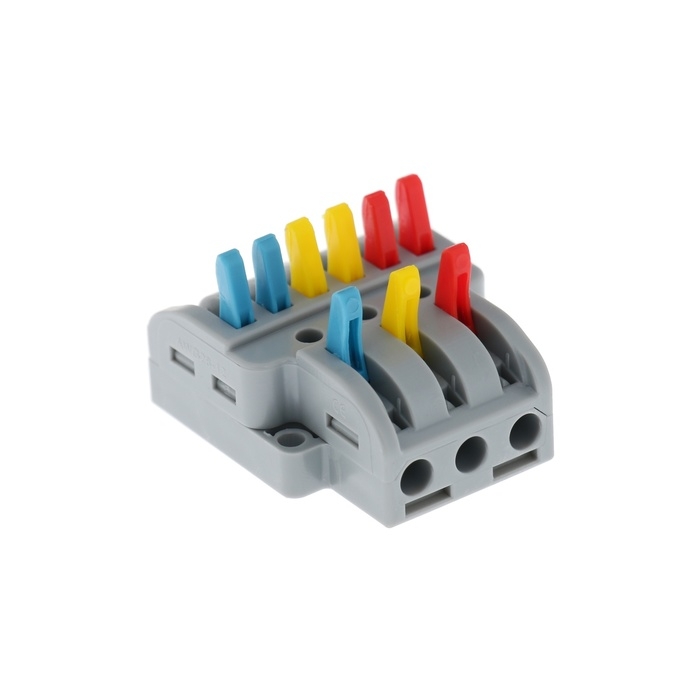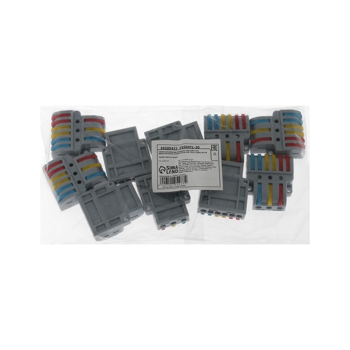 Клемма электрическая проходная, 32А, 0,08-4 мм2, фаза/ноль/земля, 2 ввод 3 вывод, наб. 10 шт 1010547