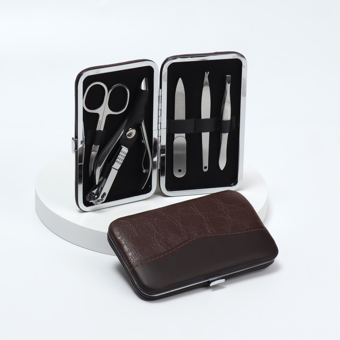 Набор маникюрный, 8 предметов, в футляре, цвет коричневый