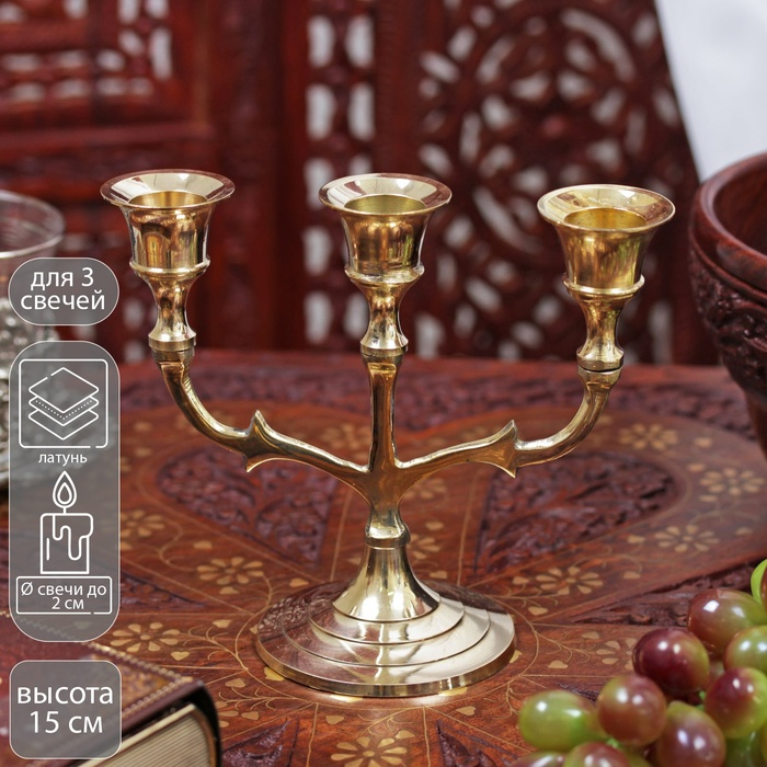 Подсвечник на 3 свечи "Трезубец" латунь 13,5х15,2х7 см