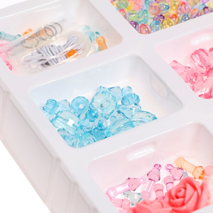 - Проявив фантазию, малышка сможет сочетать элементы набора с другими видами плетения, например соединить бисер с резиночками и получить уникальную бижутерию.