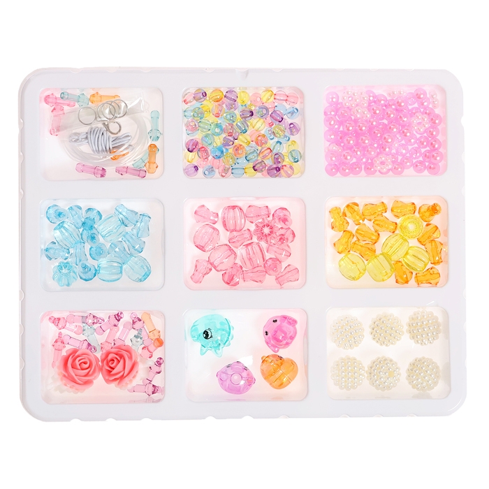 Набор для творчества «Создай своё украшение» — идеальное решение для занятия творчеством! Яркие бусины разных цветов и размеров позволят воплотить самые разные идеи.