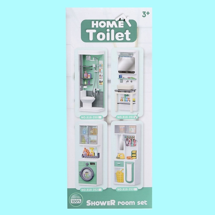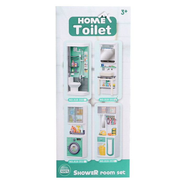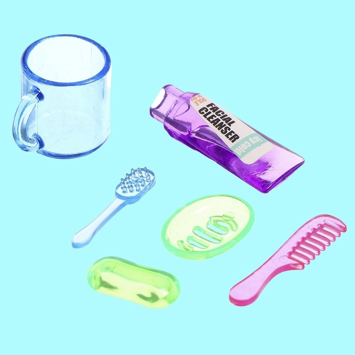 - В комплекте разнообразные аксессуары для ванной комнаты: мыльница, зубная щетка, тюбики с пастой и гелем для душа. Все элементы выполнены из высококачественного пластика, что гарантирует долгий срок службы игрушки.