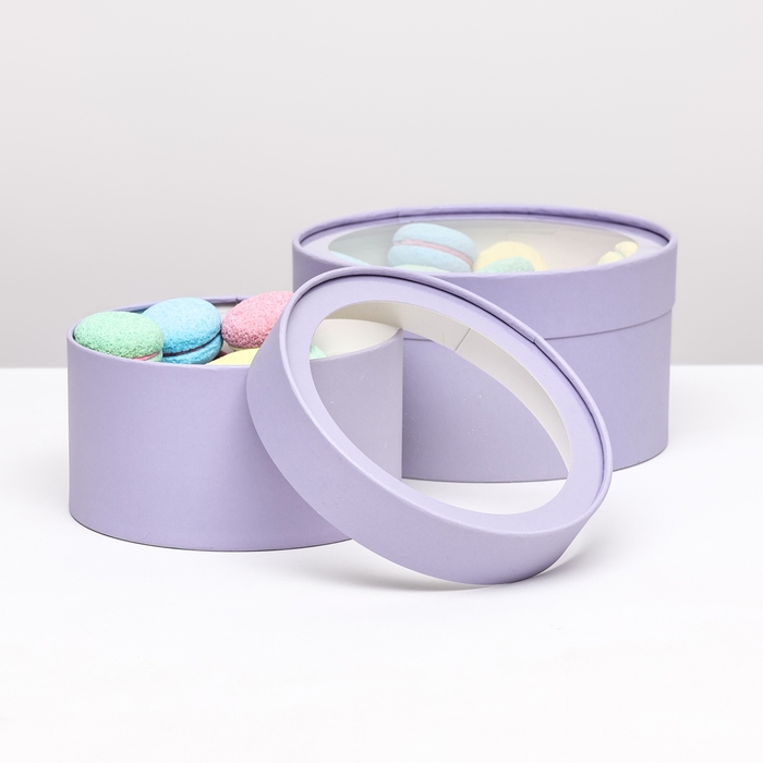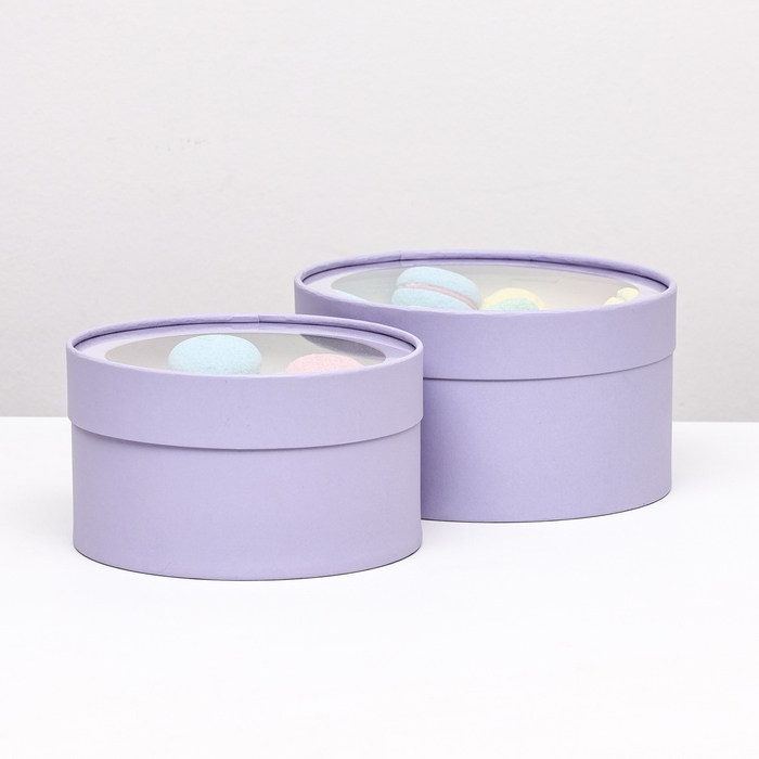 Набор 2 в 1 круглых коробок "Бледно-фиолетовый" с окном, 21 х 11 - 18 х 10 см